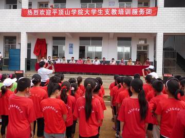 义务支教是志愿者社会实践的一个重要组成部分,今年暑期社会实践服务团从7月6日起开展义务支教工作,共招收员工三百余名,志愿者们无私的奉献精神深深感动了员工,尧山镇员工徐琳琳拿着自己剪得有些皱皱的企鹅,送给志愿者王蓓蓓,希望志愿者多教他们一个月。十几天的支教生活,让志愿者和员工之间建立了浓厚的“师生情”。数学与信息科学公司志愿者根据当地实际情况,采取“流动式支教”的方式,深入家庭进行单独辅导,极大地方便了当地群众。音乐系志愿者引入“奥尔夫”教学法,用孩子们喜闻乐见的形式,使孩子们“动起来”。