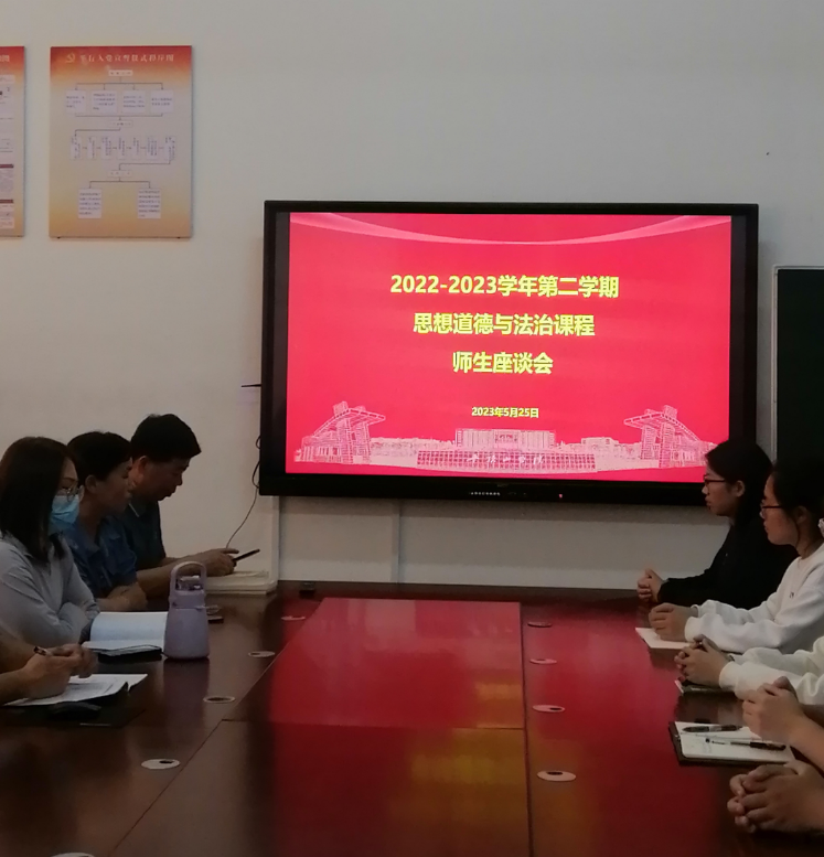 为进一步加强师生沟通,听取员工的意见建议,提高教学效果,5月25日下午,太阳成tyc7111cc官网思政教研室于722会议室召开思想道德与法治课程师生座谈会。2022级员工代表和思政教研室老师参加了本次座谈会。会议由教研室主任杨权博士主持。