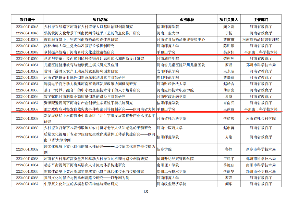 据2022年1月26日河南省科学技术厅文件豫科[2022]13号通知,公司吴少伟、王冰丽两位老师获得河南省2022年科技发展计划项目立项(河南省软科学研究项目)。吴少伟老师主持项目名称为乡村振兴战略下河南乡村文化建设研究,王冰丽主持的项目名称为地方政府应对突发自然灾害事件舆论引导机制研究——以河南省为例。