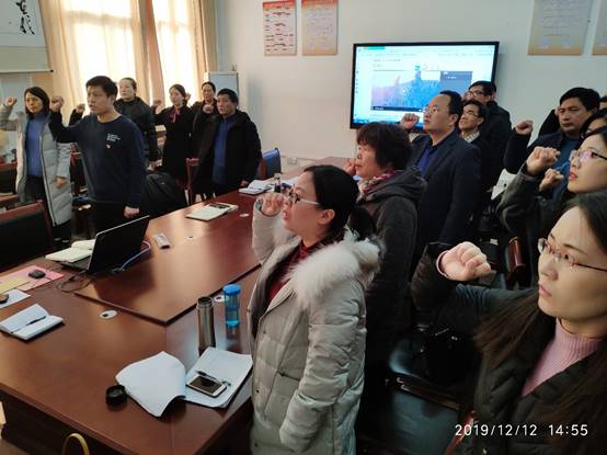 (全体党员教师进行重温入党誓词活动 摄影/徐元杰)