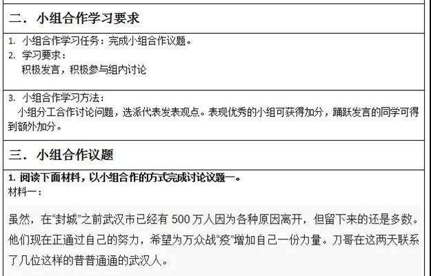 合作探究以小组为单位进行,教师先发布合作议题和任务单,小组内部展开讨论,并选派代表整合、展示小组观点。小组合作议题的拟定,依照布鲁姆学习目标分类中的分析、评价和创造标准进行。合作探究主要完成高阶教学目标。