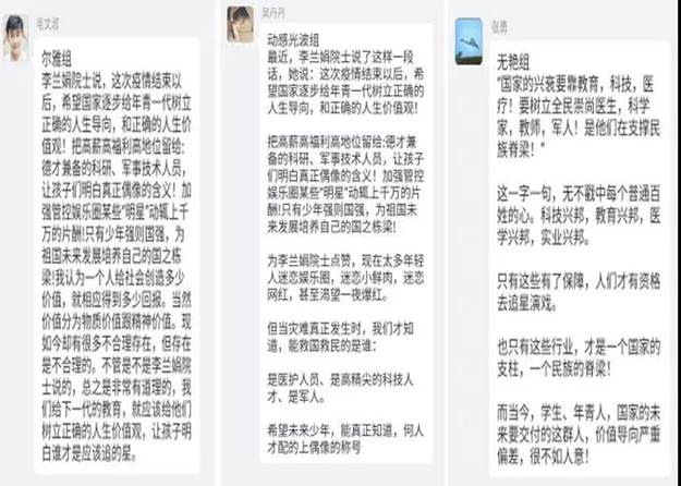 分组展示在具体操作的时候分两步进行,首先在QQ群或学习通抢答,所有参与的同学都可以得到加分,以提升员工的学习关注度和参与热情,然后通过QQ群连麦的方式逐个发言。发言的同学代表小组,因而小组成员均可以通过代表发言获得加分,发言代表则可以得到额外加分。每位小组代表发言结束,教师可适当点评,或者引导其他同学进行补充发言。