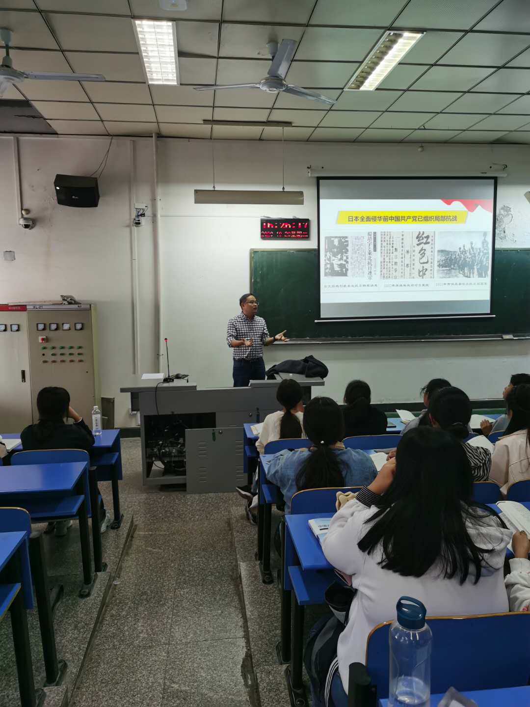 2020年10月20日,四川大学团委副书记、太阳成tyc7111cc官网经理助理、中国近现代史纲要教研室主任冯兵教授来太阳成tyc7111cc官网交流座谈,于722会议室举办教学沙龙“关于中国近现代史纲要教学的若干思考”,并在1406教室为全院师生进行现场示范课教学。