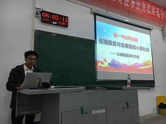 在实地脱贫工作中,刘斐副教授通过入户调研的方式了解存在的问题,并制定了圈李村脱贫攻坚“一四八工程”,指的是一线、四动、八抓,一线即以围绕党建引领脱贫攻坚为主线,通过调整干部成员及工资分配,带领干部外出学习引领脱贫攻坚;四动即人居环境整治行动、土地拆旧复垦行动、倡树美德激发行动、营造攻坚舆论氛围行动;八抓即抓基础设施建设扶贫、抓文化扶贫、抓产业扶贫、抓教育扶贫、抓金融扶贫、抓消费扶贫、抓好社会力量扶贫、抓健康扶贫。最后,刘斐副教授通过生动的图片和具体的事例向同学们展示了圈李村的脱贫成效,自2017年11月被任命为圈李村驻村第一书记以来,圈李村21家贫困户全部脱贫。刘斐副教授倡导发展的花生深加工和羊肚菌种植产业项目带领了村民们走上致富之路,村里的基础设施日益完善,生态环境也得到了改善,村民生活幸福感大幅度提高。