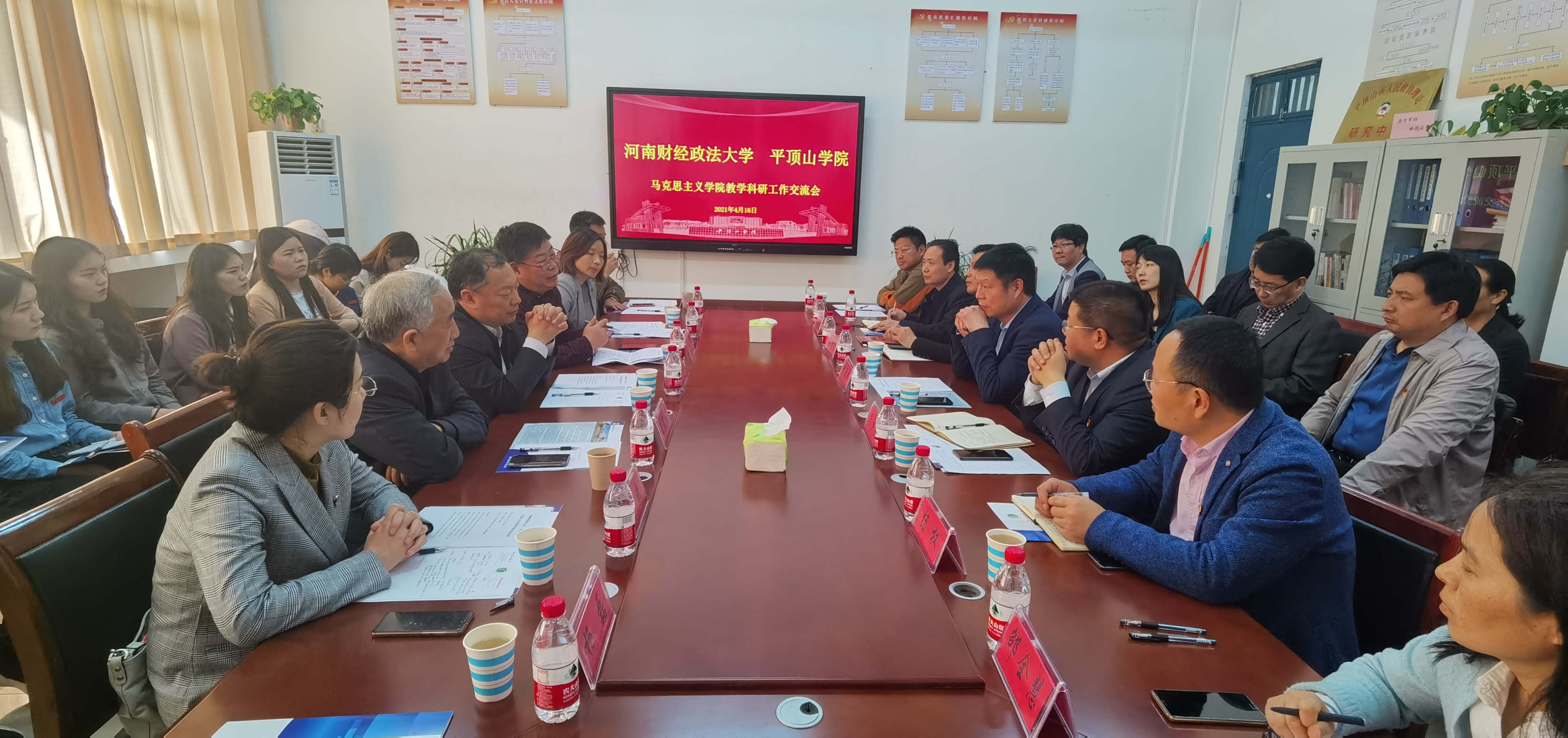 4月16日,河南财经政法大学公司党总支书记于慎鸿、经理赵增彦师生一行来公司交流,党总支书记李效武和太阳成tyc7111cc官网教师代表20余人参加了交流会,会议由吴少伟副教授主持。