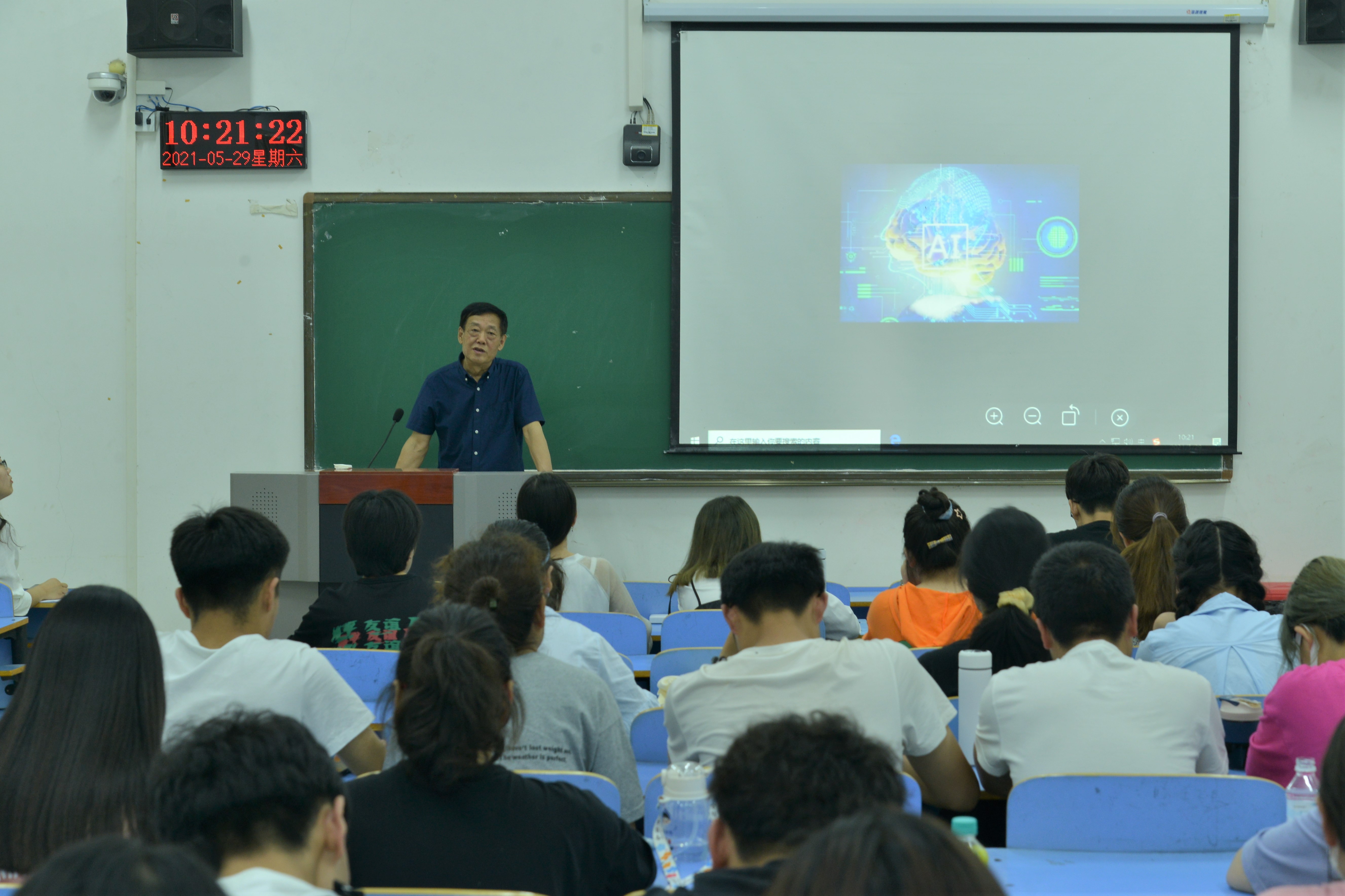 5月29日上午10时,“追梦·领航”思政课在图书馆L302教室准时开讲,陶瓷公司经理梅国建教授就人工智能时代的相关问题为同学们上了一节生动鲜活的思政课。