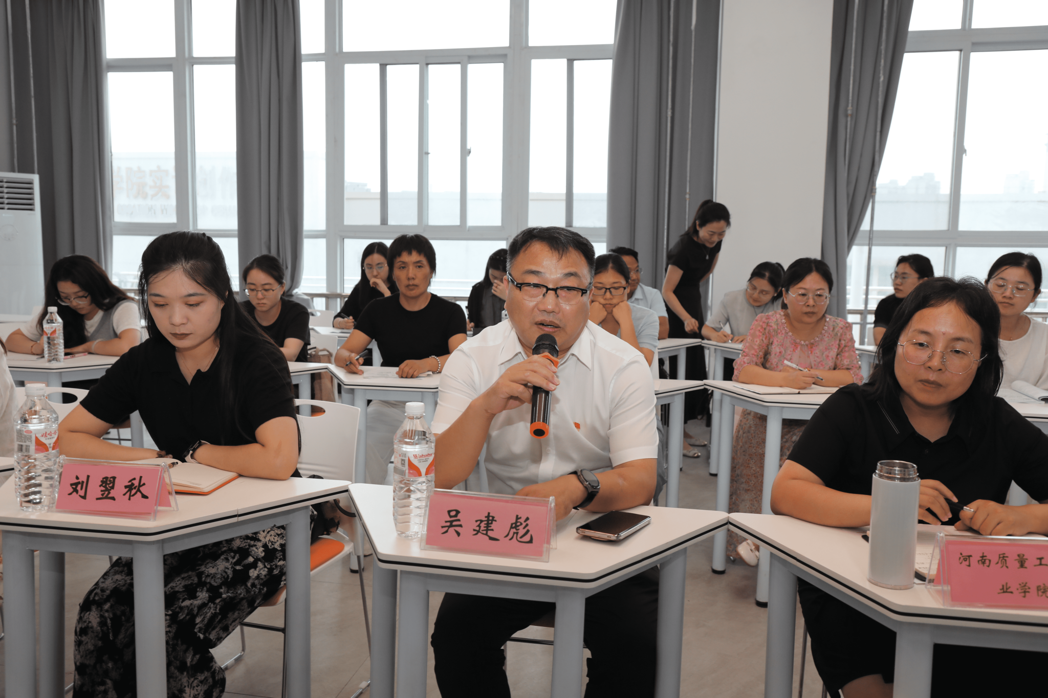交流环节,河南质量工程职业公司道德与法治教研室主任周芳琳结合本校实际教学情况,指出在教学内容上注重案例与主题对标,通过精选案例;在方法上,注重情景化教学,借助信息技术赋能教学;在实践中,注重从课堂到社会的延伸,以达到伟大抗战精神教学最佳效果。