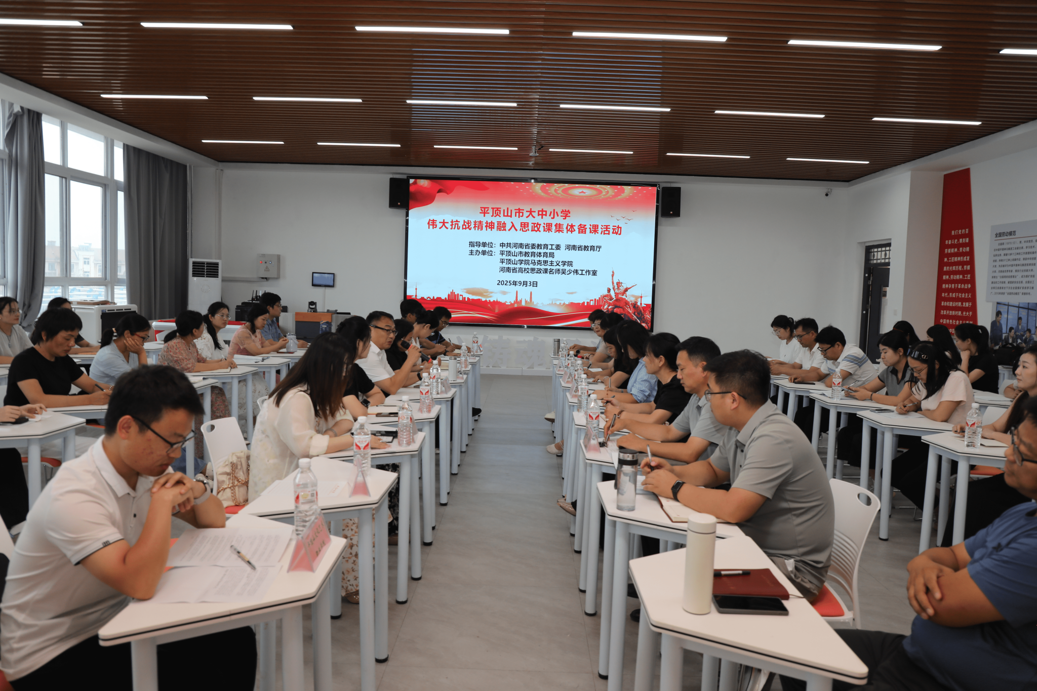 为学习贯彻习近平总书记在纪念中国人民抗日战争胜利暨世界反法西斯战争胜利80周年大会上的重要讲话精神,从历史中汲取前行的智慧和力量,在新征程上弘扬伟大抗战精神,不断从胜利走向新的胜利,9月3日,在省委教育工委、省教育厅指导下,平顶山片区大中小学联合举行“伟大抗战精神融入思政课”集体备课活动。